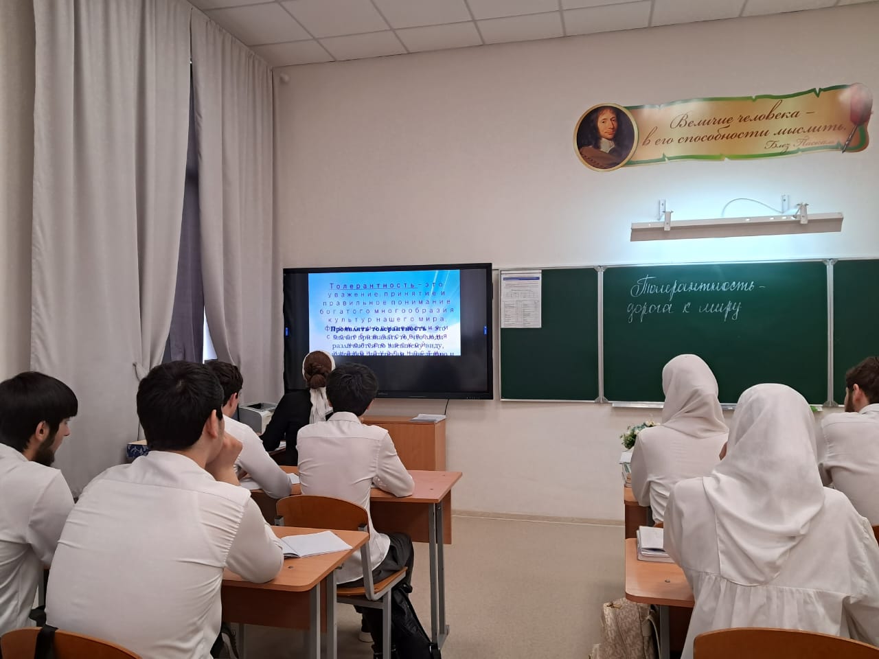 Школа оборудована современными средствами технического обучения: мультимедийный проектор, интерактивная доска, музыкальный центр.
