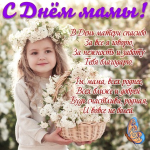 29.11.2020Поздравляю с Днем матери! Нет ничего сильнее, чем материнская любовь. Нет ничего важнее, чем материнское сердце. Нет ничего бесценнее, чем материнское тепло. Пусть же всегда Бог хранит светлое чувство, связывающее души матери и ребенка!